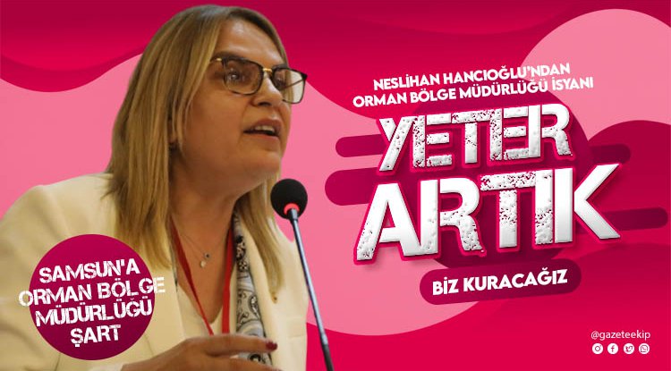 İlgili mevzuatta tanımlı olan kriterlerin tamamını karşıladığı halde, Samsun'a Orman Bölge Müdürlüğü kurulmamasına tepki gösteren CHP’li Neslihan Hancıoğlu, “Puansa puan, ormansa orman... Yeter artık! Nedir bu Samsun düşmanlığı? Bu iktidarın Samsun’u layık görmediği o müdürlük, bizim iktidarımızda kurulacak” dedi.