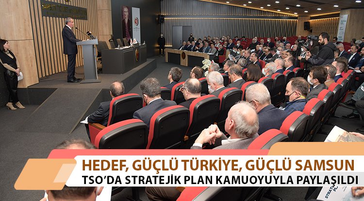 Türkiye Odalar ve Borsalar Birliği (TOBB) Oda Borsa Akreditasyon Sisteminde en başarılı Odalardan biri olarak yer alan Samsun Ticaret ve Sanayi Odası’nın üyelerine ve bölgesine yüksek standartlarda hizmet vermek adına paydaşlarının katılımıyla yürüttüğü 2022-2025 yıllarını kapsayan Stratejik Planı tamamlanarak, kamuoyuyla paylaşıldı. Meclis Başkanı Haluk Akyüz başkanlığında gerçekleştirilen Samsun Ticaret ve Sanayi Odası Mart ayı Meclis Toplantısı sonrası yapılan tanıtım toplantısına Samsun Valisi Doç. Dr. Zülkif Dağlı, Cumhuriyet Başsavcısı Mehmet Sabri Kılıç, İl Emniyet Müdürü Dr. Ömer Urhal, Samsun Üniversitesi Rektörü Prof. Dr. Mahmut Aydın, 19 Mayıs Üniversitesi Rektör Yardımcısı Prof. Dr. Fehmi Yazıcı, İlkadım Belediye Başkanı Necattin Demirtaş, Atakum Belediye Başkanı Cemil Deveci, Kavak Belediye Başkanı İbrahim Sarıcaoğlu, Samsun Baro Başkanı Pınar Gürsel Yıldıran, kamu kurum ve kuruluşların müdürleri, Samsun Oda ve Borsa Başkanları, Samsun TSO Yönetimi, Meclis ve Meslek Komite Üyeleri, akademisyenler, sivil toplum örgütleri ve iş dünyasının temsilcileri katıldı.