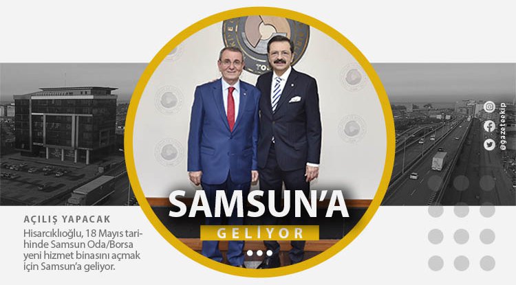 TOBB Başkanı M. Rifat Hisarcıklıoğlu, 18 Mayıs tarihinde Samsun Oda/Borsa yeni hizmet binasını açmak için Samsun’a geliyor. Samsun, Oda/Borsa hizmet binasının açılışı ayrıca, ilklere de şahitlik yapacak. Açılışta, Türkiye’nin milli aracı TOGG Otomobili, Anadolu’da ilk kez Samsunlularla buluşacak. Öte yandan, TOBB Yönetimi de, 19 Mayıs Atatürk’ü Anma, Gençlik ve Spor Bayramı dolayısıyla Yönetim Kurulu Toplantısı’nı Samsun’da yapacak.