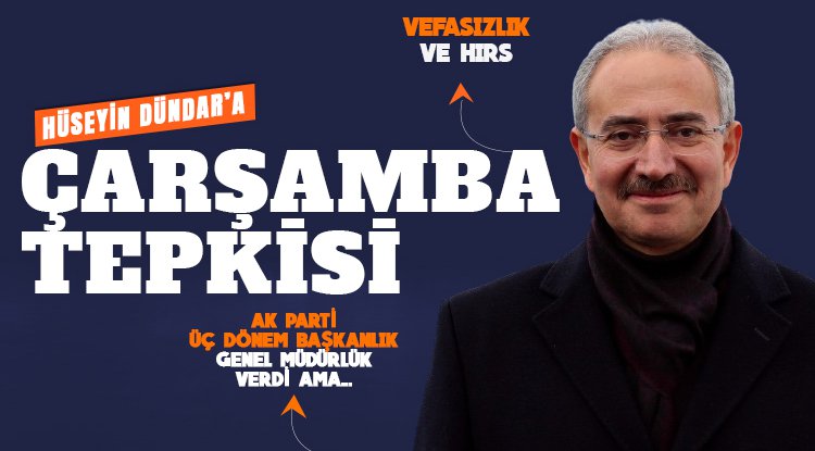 AK Parti'nin üç dönem belediye başkanlığı ve genel müdürlük görevi verdiği Hüseyin Dündar'ın Çarşamba'da AK Parti'nin karşısına başkan adayı olarak dikilmesi büyük tepki çekti. Çarşamba halkı, "Hüseyin Dündar'ın AK Parti'ye karşı aday olması büyük bir vefasızlık ve hırsın göstergesidir" dedi.