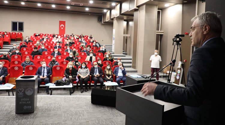 Çevre Şehircilik ve İklim Değişikliği İl Müdürü Ömer Bolat ise, ”Sıfır Atık dediğimiz zaman daha önceleri insanlarımızın aklına çöp ya da atıklar başka bir sektörün ham maddesi geliyordu. Bu nedenle burada biz insanlar, ekonomi, zaman ve enerji tasarrufunun tamamını içine alan 'Sıfır Atık' kavramına geçtiğimiz zaman çok önemli bir faktör ortaya çıkmakta. 2017 yılında Cumhurbaşkanımızın eşinin riyaseti ile başlayan, 2018 yılında mevzuata giren, bugün ise zorunlu hale gelen 'Sıfır Atık' projesi 31 Aralık 2021 itibariyle nüfus yoğunluğu oranına göre bazı ilçe merkezlerinde hayata geçirilmesi gereken takvim sürecine dahil olmakta. Bu manada İlkadım ilçemizde nüfus potansiyeli açısından birinci dereceden öncelikli ilçemiz. İlkadım Belediyemiz ile birlikte proje üretmekte ve birlikte çalışmaktayız. Bu çalışmalarımızın değer bulması için siz değerli öğretmenlerimizin çok büyük katkısı olacağına inanıyoruz. Çünkü siz toplumun fidanlarıyla ile berabersiniz. Bu taze fidanların zihinlerine atık ile vereceğiniz her bilgi bizim için çok önemli bir değer katmakta. Sıfır Atık politikası artık Türkiye'de geri dönülmeyecek bir kavram haline geldi. Yabancı bazı ülkelerimize biz bu projemizi artık anlatıyoruz. Dünyada da Sıfır Atık, Birleşmiş Milletler'de dahi ön alan bir proje. Bakanlık bünyemizde iklim değişliği adı altında 'Sıfır Atık' politikası yürütmesi için birimlerimiz oluşturuldu. Hayatımızda yer alan teknoloji, fabrikalar, sanayi tesisleri, havamızla, suyumuzla, toprağımızla iletişim halinde. İşte tam burada 'Sıfır Atık' dediğimiz şey atıkların her hangi bir alana atılmaması ve değerlendirilmesi gerektiğini ve bu gibi etkenlerin hayatımıza vereceği olumsuz etkileri bertaraf eden atık maddeleri ham madde olarak kullanmaktayız” dedi.