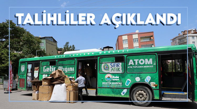 ATOM otobüsüne yalnızca atıkları getirenlerin katılabileceği çekilişte her ay 50 aileye 500 TL veriliyor. 10 aylık bir süredir devam eden “Getir Atığını Al Harçlığını” proje kapsamında belediyenin toplantı salonunda Samsun 8. Noter Katibi Cahit Cengiz Gülsev'in gözetiminde 10 bin 800 bilet arasından kazanan 50 kişi yapılan çekilişle belli oldu.