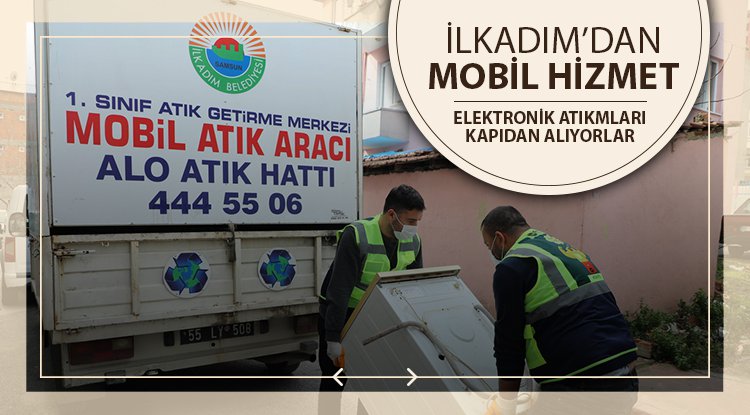 İlkadım Belediyesi Çevre Koruma ve Kontrol Müdürlüğü organik atıklarla birlikte, çöpe atılarak toprağa ve yer altı sularına zehirli maddelerin karışmasına neden olan elektronik atıkların çevreye zararsız bir şekilde toplanması ve geri dönüşümünün sağlanması için hayata geçirdiği 'Mobil Atık Aracı', bir telefonla elektrikle çalışan beyaz eşya ve elektronik atıkları vatandaşların kapısından teslim alıyor.