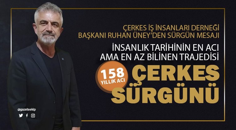 Çerkes İş İnsanları Derneği Başkanı Ruhan Üney, 21 Mayıs 1864 Çerkes sürgünü ve soykırımının 158. yıldönümü dolayısıyla bir mesaj yayımladı.
