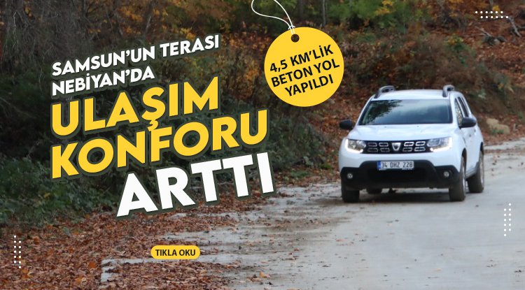 'Karadeniz'in Terası' olarak bilinen Nebiyan Yaylası’na gelen turist sayısının artırılması için yürütülen çalışmalar Samsun Büyükşehir Belediyesi’nin desteğiyle devam ediyor. DOKAP’la imzalanan protokol kapsamında Büyükşehir Belediyesi tarafından Nebiyan Yaylası’na 4.5 kilometrelik beton yol yapıldı.