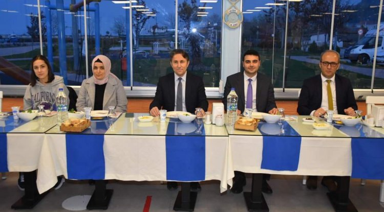 İftar yemeği öncesi yurda gelen Kaymakam Kılıç ve Başkan Kıyma bir süre öğrencilerle sohbet ettikten sonra yurt yemekhanesine geçtiler.