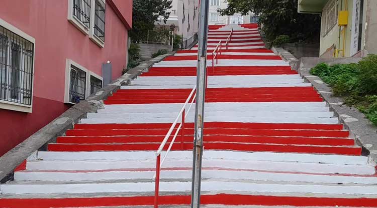 İlkadım Belediye Başkanı İhsan Kurnaz’ın talimatı ile İlkadım ilçesinde Fen İşleri Müdürlüğü tarafından gerçekleştirilen bakım, onarım ve yenileme çalışmalarında sokaklarda bulunan merdivenler ve yenilenen binaların renkleri kırmızı beyaz oldu. İlk olarak ilçenin en uzun merdivenlerinin bulunduğu Cedit Mahallesindeki merdivenler kırmızı ve beyaza boyandı. Ardından Güzeldere Mahallesi’nde bulunan ve İlkadım Belediyesi tarafından yenileme çalışmaları tamamlanan eski köy okulu binası kırmızı beyaz renkler ile boyandı.