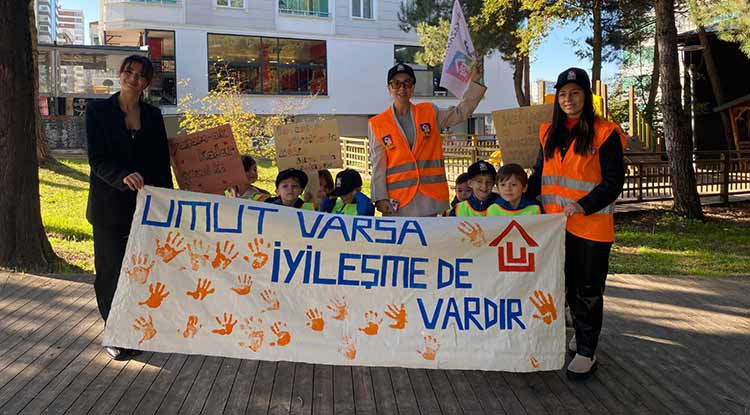 Ziyarette çocuklara sağlıklı yaşam alışkanlıkları, yardımlaşma kültürü ve paylaşmanın önemi üzerine bilgilendirici bir farkındalık semineri verildi. Minikler, “Yaşama El Ver” etkinliği kapsamında üzerinde “Umut Varsa İyileşme de Vardır” yazılı çarşafa turuncu boyalarla el izlerini bırakarak desteklerini renklerle ifade etti.