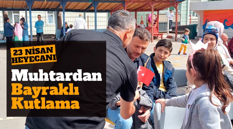 Samsun'da, Hasköy mahallesi muhtarı Sedat Akyüz, 23 Nisan Ulusal Egemenlik ve Çocuk Bayramı'nda çocuklara yüzlerce Türk bayrağı dağıttı.
