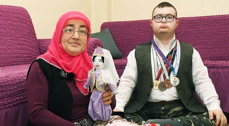 Oğlunun geçen yıl Canik Özel Eğitim Uygulama Merkezi’nin 3. kademesinden mezun olduğunu söyleyen anne Güreş, spora olan düşkünlüğü ile masa tenisi, yüzme ve gülle şampiyonalarında dereceler elde ettiğini de vurguladı. Anne Güreş, “Oğlumun down sendromlu doğduğunu öğrenince tedavi ettirmeye çalıştık ama bu da bir imtihandı. 5 yaşında özel eğitime başvurdum. Şehre uzaklığımız sebebiyle okula gidiş gelişimiz çok zordu. Okuldayken akrabalarımın evinde bekliyor, sonra birlikte eve dönüyorduk. Geçen yıl da lise dengi özel eğitim okulundan mezun oldu. Mümin’in eğitimini sürdürüp, sosyalleştirmek ve ek gelir elde etmek için yöresel bebek kursuna ve aktivitelerine katılıyoruz” dedi.