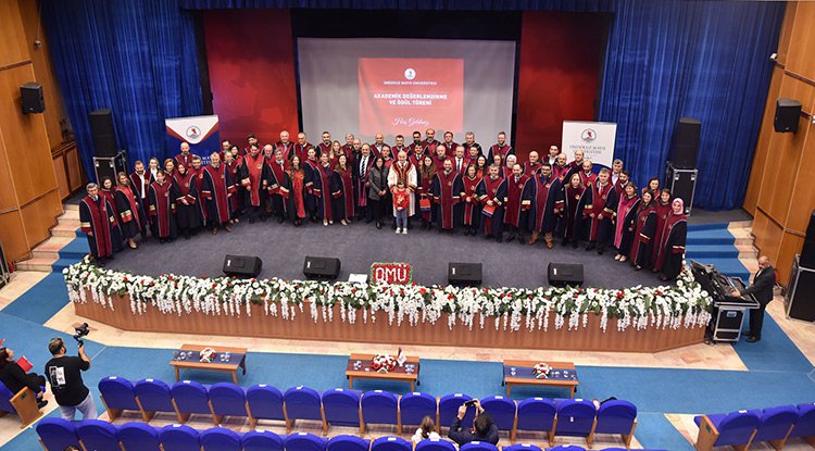 OMÜ Akademik Değerlendirme ve Ödül Töreni, Atatürk Kongre ve Kültür Merkezi’nde gerçekleşti. Saygı duruşunda bulunulması ve İstiklal Marşı’nın okunması ile başlayan tören, protokol konuşmalarıyla devam etti. Başarılı bilim insanlarının ödüllendirildiği törene Samsun Valisi Orhan Tavlı, . Samsun Cumhuriyet Başsavcısı Mehmet Sabri Kılıç, OMÜ Rektör Yardımcıları Prof. Dr. Murat Terzi, Prof. Dr. Sevim Alışır, Genel Sekreter Prof. Dr. İdris Varıcı, Türk Kızılay İl Yönetim Kurulu Başkanı Onur Çoban, Türk Kızılay Orta Karadeniz Bölge Kan Merkezi Müdürü Dr. Muhsin Yıldırım, Kızılay Samsun Kan Merkezi Müdürü Dr. Engin Erdoğan, idari ve akademik personel ile biniş giyen öğretim üyeleri katıldı.