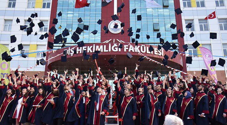 Dönem birincisi Abdullah Bülbül, Fakülte Dekanı Prof. Dr. Nilüfer Özkan ile dönem kütüğüne birincilik plaketini çaktı. Ardından Diş Hekimliği Fakültesinden başarıyla mezun olan öğrencilere hediye ve başarı belgeleri verildi. Mezuniyet töreni, öğrencilerin keplerini havaya atmasıyla son buldu.