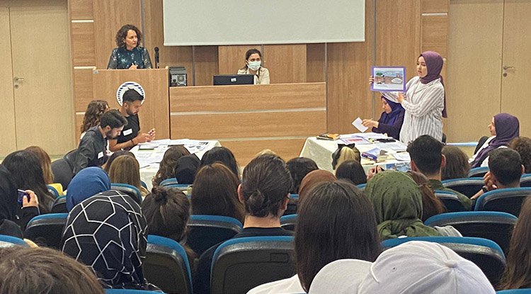 Sağlık Bilimleri Fakültesi Hemşirelik Bölümü 4. sınıf öğrencilerinin “Yüz Yüze Eğitim mi? Uzaktan Eğitim mi?” argümanlarını tartıştığı münazara, 27 Nisan 2022 tarihinde saat 13.00’te konferans salonunda Arş. Gör. Dr. Hatice Uzşen moderatörlüğünde gerçekleşti. Yüz Yüze Eğitim Grubunun danışmanlığını öğretim elemanı Arş. Gör. Güven Soner, Uzaktan Eğitim Grubunun danışmanlığını öğretim elemanı Arş. Gör. Ercan Tunç yaptı. Yüz Yüze Eğitim Grubu, öğretmenler ve öğrenciler birebir iletişim sağladığı için uygulamalı eğitimin önemini vurguladı. Uzaktan eğitim grubu ise, toplumda yüz yüze eğitim fırsatı bulamayan bireylerin her koşulda ve her zaman eğitim hakkından faydalanabileceklerini, çeşitli eğitim materyalleri ile eğitimin desteklendiğini ifade etti.