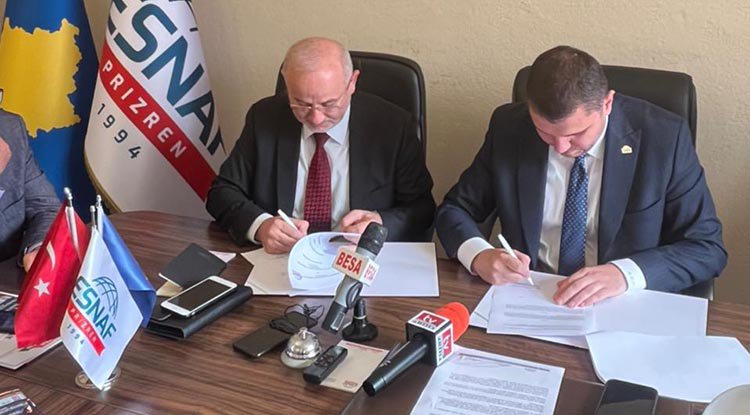 Prizren Esnaf Derneğinde gerçekleştirilen törende anlaşmaya Kosova’da konuk bulunan OMÜ Rektörü Prof. Dr. Yavuz Ünal ve Esnaf Derneği Başkanı Varis Xhejlani imza attı.