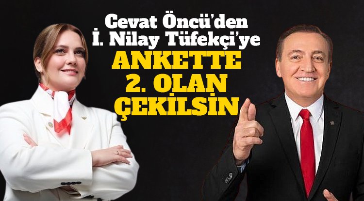 CHP Samsun Büyükşehir Belediye Başkan Adayı Cevat Öncü, İYİ Parti Adayı İmren Nilay Tüfekci’ye ‘Hodri Meydan’ diyerek, “Gel, güvenilir bir anket firmasına İmren hanım ile anket yaptıralım. Anketin sonucuna göre geride olan diğerinin adına çekilsin” dedi.