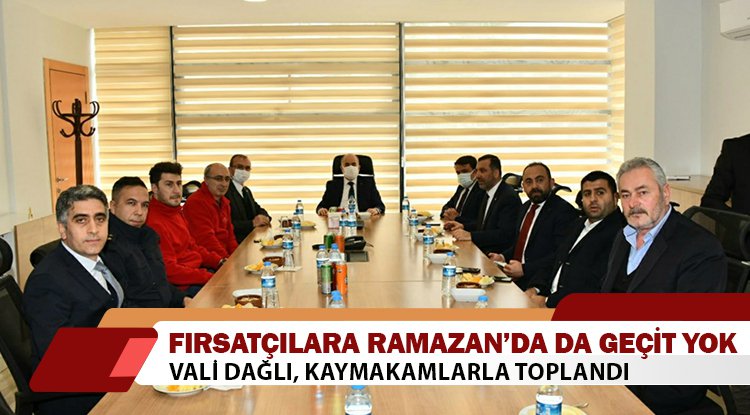 Samsun Valisi Doç. Dr. Zülkif Dağlı, yaklaşan Ramazan ayını vatandaşların huzur ve güven içerisinde geçirebilmesi için kaymakamlar ve ilgili kurum yöneticileri ile toplantı yaptı. Vali Dağlı, Ramazan ayında fırsatçılık yapmak isteyenlere karşı teyakkuz halinde olunacağına dikkat çekti.