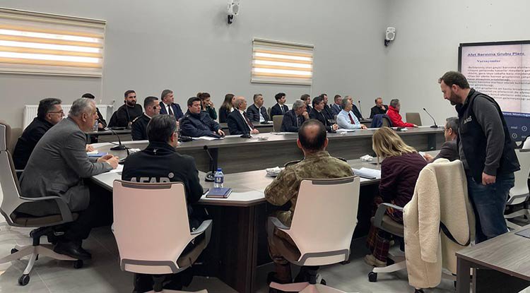 Afet bölgesinde afetzedelerin acil ve geçici barınma hizmetlerine yönelik koordinasyondan sorumlu olan Afet Arama Kurtarma Grubu, 15.04.2025 tarihinde ana çözüm ortağı İl Afet ve Acil Durum Müdürlüğünün ev sahipliğinde Vali Yardımcısı Şevket Cinbir ve destek çözüm ortağı kurumların yetkililerinin katılımıyla toplandı.