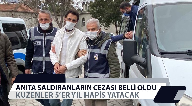 Samsun'da Onur Anıtı'na saldırdıkları gerekçesiyle tutuklanan 2 kuzen yargılandıkları mahkemece 5 yıl 22'şer gün hapis cezasına çarptırıldı.