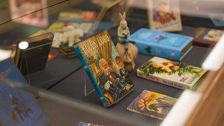 tarihinin tozlu raflarından günümüz vitrinlerine taşınmış yüzlerce yerli ve yabancı çocuk kitap yer alıyor.