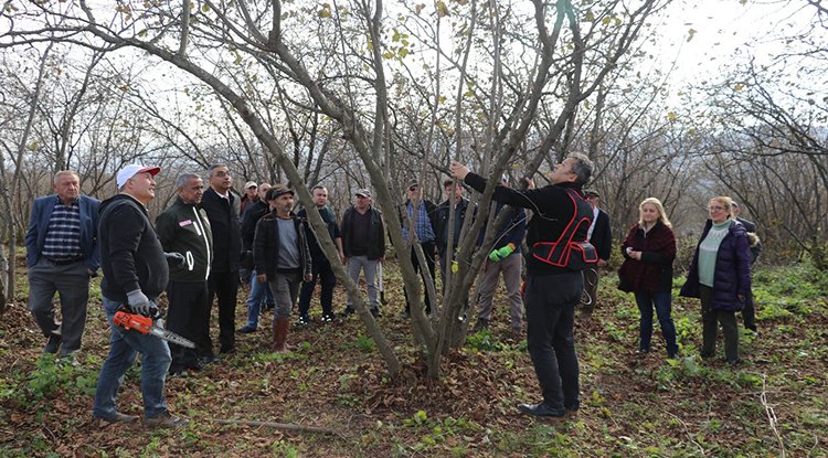 Fındık üreticilerine, konu uzmanlarınca hasat sonu fındık bahçelerinde yapılması gereken teknik uygulamalardan biri olan budamanın nasıl ve neye göre yapılacağı uygulamalı bir şekilde anlatılırken, bahçelerde bu dönemde görülebilecek hastalık ve zararlı mücadeleleri konularında da tavsiyelerde bulunululdu.