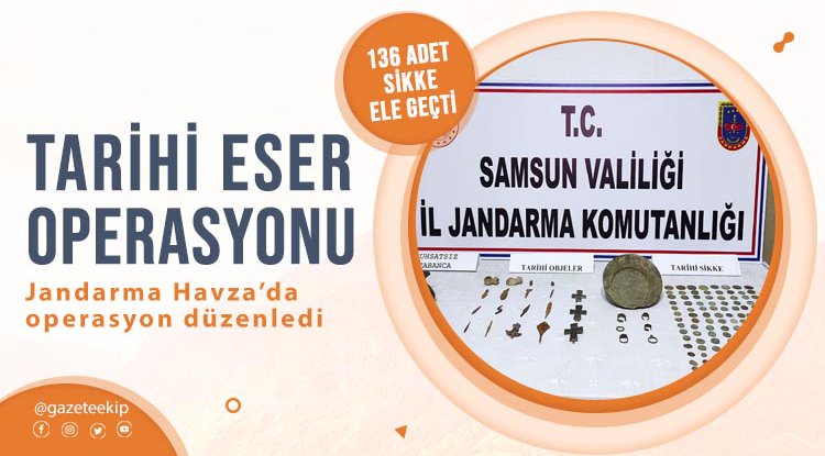 Samsun İl Jandarma Komutanlığı ekipleri tarafından Havza'da düzenlenen operasyonda 136 adet sikke ve 26 adet obje ele geçirilirken, 1 kişi gözaltına alındı.