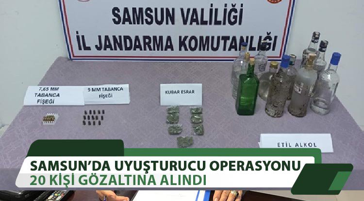 Samsun'da jandarmanın gerçekleştirdiği denetimlerde 20 şüpheli gözaltına alınırken, 1 kilo 743 gram kubar esrar, 465 gram metamfetamin ele geçirildi.