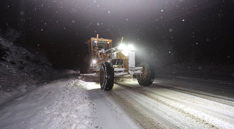 Çalışmalar kapsamında son 24 saat içinde kar yağışı nedeniyle hiçbir yolun kapanmasına müsaade etmeden müdahale eden ekipler, yağışın devam ettiği bölgelerde çalışmalarını sürdürüyor.