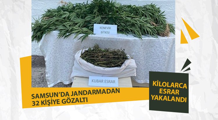 Samsun'da Jandarma’dan uyuşturucu operasyonu... 30 ayrı olayda 32 şüpheli şahıs gözaltına alındı.