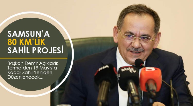 Samsun Büyükşehir Belediye Başkanı Mustafa Demir, Terme Hürriyet mahallesinden Costal’a, Omtel’den 19 Mayıs ilçesine kadar ki tüm sahille ilgili şuan proje çalışılıyor. Bakanlığın da onayına sunarak dünyada 80 kilometrelik sahili projelendirilmiş, planlanmış tek şehir olacağız" dedi.
