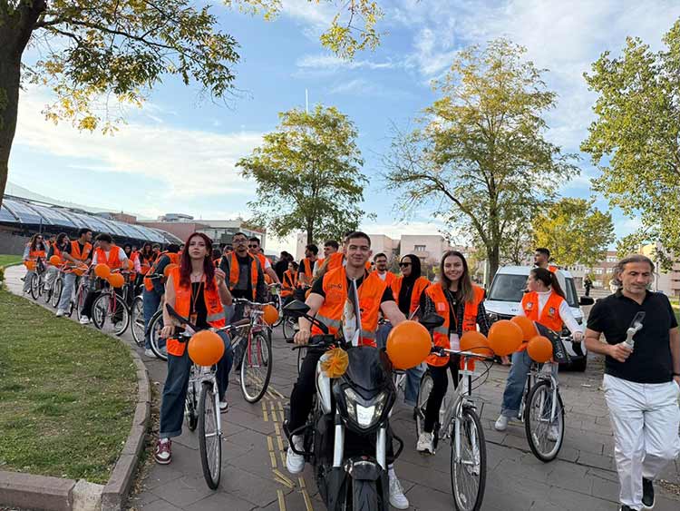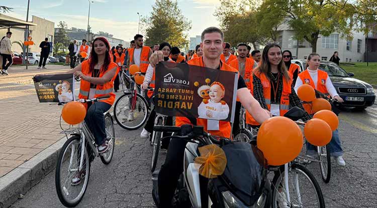 Löseminin sembol rengi turuncu rengine bürünen etkinlikte öğrenciler, bisikletlerini turuncu balonlarla süsleyerek kampüs yollarında pedal çevirdi. Hem keyifli hem anlamlı anlara sahne olan etkinlikte öğrenciler, lösemili çocukların yanında olduklarını bir kez daha vurguladı.