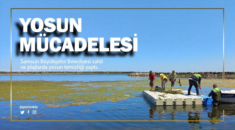 Samsun Büyükşehir Belediyesi sahil ve plajlarda yosun temizliği yaptı.