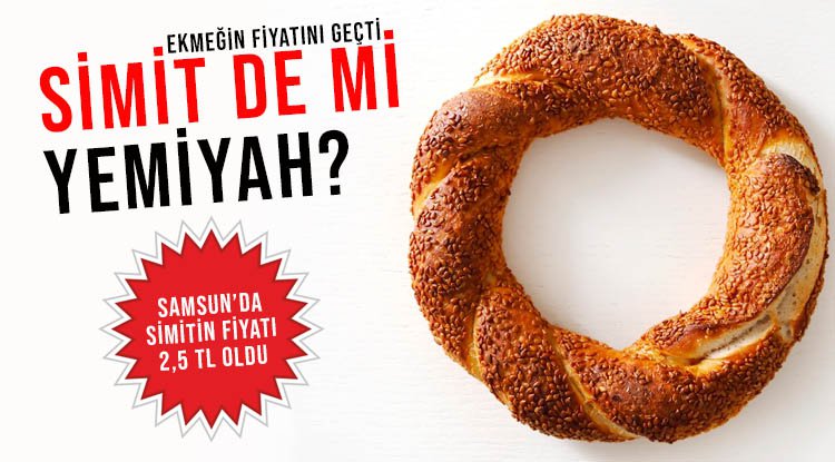 Samsun'da simit fiyatı ekmek fiyatını geçti. Samsun Fırıncılar Odası tarafından una ve susama gelen zamlar nedeniyle yapılan yeni zamma göre daha önce 80 gram olan simit 60 grama düşürülerek fiyatı 2 liradan 2,5 liraya çıkarıldı.
