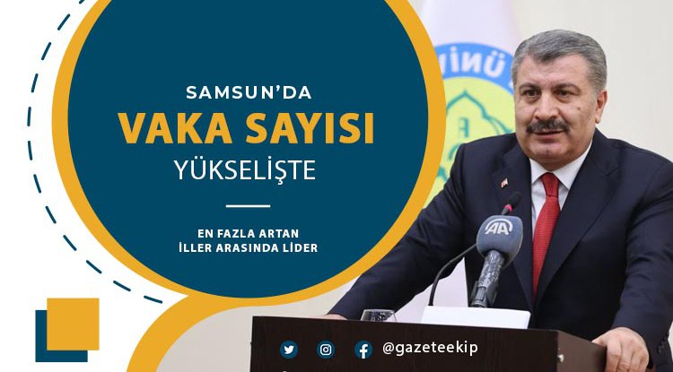 Sağlık Bakanı Dr. Fahrettin Koca, 29 Ocak-4 Şubat arasında vaka yoğunluğu bir önceki haftaya göre en çok artan illeri açıkladı. Buna göre Samsun, vaka sayısı en çok artan iller arasında birinci sırada. 22-28 Ocak tarihleri arası insidans haritasında 100 binde 704,83 vakası bulunan Samsun'da vaka sayısı 100 binde 610 kişi artarak, 1314,67'ye yükseldi.