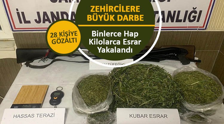 Ayrıca olaylarda 23 bin 736 gram kubar esrar maddesi, bin 500 gram toz esrar, 10 bin 741 adet sentetik uyuşturucu ecza hap, bin 305 gram metamfetamin, 89 gram bonzai, 29 kök kenevir bitkisi, 5 gram kokain, 3 adet tabanca ve 4 adet av tüfeği ele geçirildi.