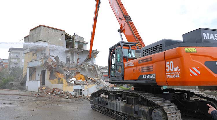 Samsun’u modern ve güvenli yaşam alanlarıyla buluşturmayı hedefleyen Samsun Büyükşehir Belediyesi kentsel dönüşümde kararlı adımlarını sürdürüyor. Vatandaşların büyük umutla hayata geçmesini beklediği projede yıkım çalışmaları hak sahipleri ile yüzde yüz anlaşmanın sağlandığı Anadolu Mahallesi ile başladı. Kent için tarihi bir süreç olan dönüşümde yıkım çalışmalarını Büyükşehir Belediye Başkanı Halit Doğan’da yakından takip etti.