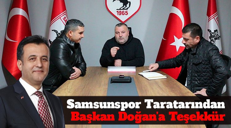 Samsunspor Taraftar Grupları, göreve geldiği andan itibaren Samsunspor ve taraftarın yanında duran Büyükşehir Belediye Başkanı Halit Doğan'a teşekkür etti. Taraftarlar, "Kalbi Samsunspor için atan ve elini taşın altına koymaktan çekinmeyenler, bizim için diğerlerinden 100 adım öndedir" dedi.