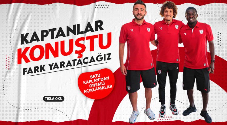 Samsunspor Futbol Gelişim Direktörü Batu Kaplan ile kaptanlar Osman Çelik, Yusuf Abdioğlu ve Moryke Fofana taraftarlara önemli mesajlar verdi. Kaptanlar, takımda aile ortamı olduğunu ve bu sene fark yaratacaklarını söyledi.