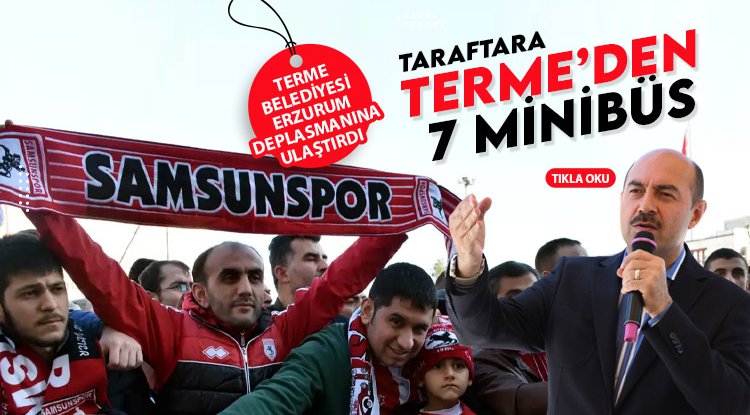 Bu akşam deplasmanda Büyükşehir Belediye Erzurumspor ile karşılaşacak olan Samsunspor'u desteklemeye giden kırımızı-beyazlı taraftarlara Terme Belediyesi'nden büyük destek geldi. Taraftarlar, 7 minibüs sağlayarak deplasmana ulaşmalarını sağlayan Terme Belediye Başkanı Ali Kılıç'a teşektkür ederken, Başkan Kılıç, her zaman Samsunspor'un ve taraftarların yanında olduklarını söyledi.