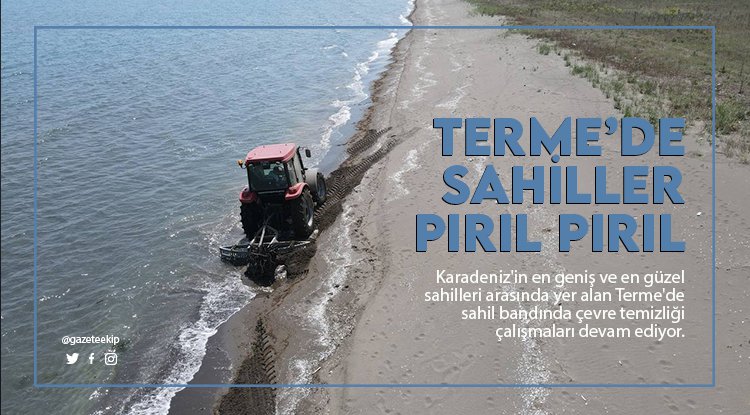 Havaların ısınması ve deniz sezonunun başlamasından önce çalışmalara hız veren Terme Belediyesi Temizlik işleri Müdürlüğü, Samsun Büyükşehir Belediyesi işbirliği ile sahil temizliği için kolları sıvadı. Kum temizleme aracı ve ekipler tarafından gerçekleştirilen çalışma ile yosun, çöp ve otlarla kaplanan sahiller temizlenerek doğal görünümüne kavuşturuldu.