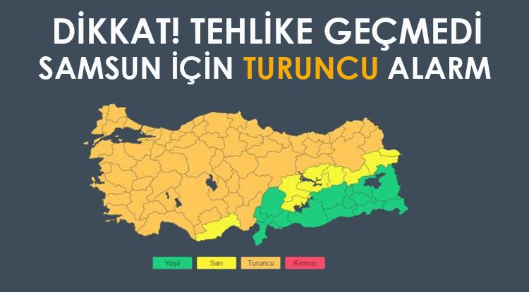 Meteoroloji Genel Müdürlüğü tarafından yapılan uyarıda, Samsun’a havayla ilgili 'tehlikeli durum'larda kullanılan turuncu kodlu uyarı verildi. Samsun’da bu gece saat 00.00 ile 09.00 saatlerinde arasında rüzgarın etkili olması bekleniyor. Kuvvetli rüzgar ve fırtınanın bu gece ve yarın 60-90 km/sa, yüksek kesimlerde yer yer 100 km/sa üzeri olması beklendiğinden muhtemel olumsuzluklara karşı dikkatli ve tedbirli olunması istendi.
