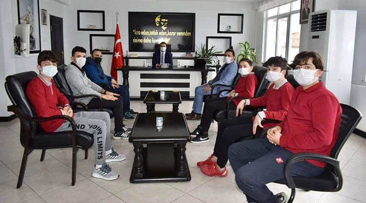 100. Ortaokulu Müdürü Fatih Özcan, Beden Eğitimi Öğretmeni Yasin Kılıç, Antrenör Orhan Keleş ve öğrenciler Eren, Muhammed, Deniz ve Yiğit’i misafir eden Yakakent Kaymakamı Abdüssamed Kılıç sporcuları göstermiş oldukları başarıdan dolayı tebrik ederek kendilerine başarı belgesi verdi.