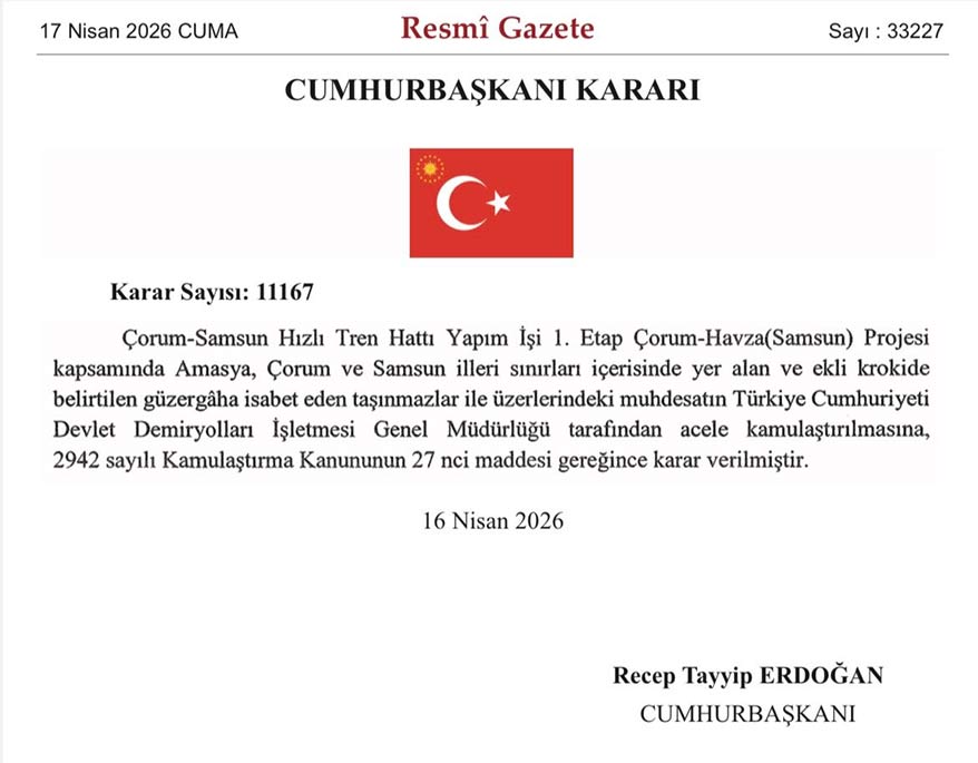 Samsun Valisi Orhan Tavlı, Çorum–Samsun Hızlı Tren Hattı 1. Etap Yapım İşinin Resmi Gazete’de yayımlanması ile ilgili sosyal medya hesabından bir açıklama yaptı.