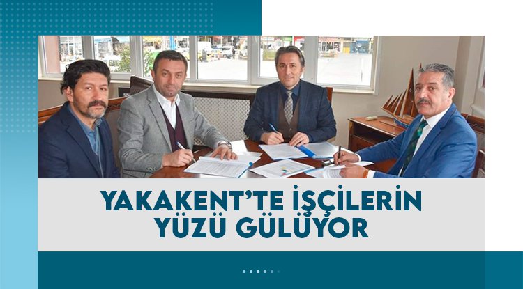 Yapılan sözleşme, Yakakent Belediyesi Hizmet Binası'nda, Hizmet-İş Sendikası Samsun Şube Başkanı Ziya Uzun ile Yakakent Belediye Başkanı Hüseyin Kıyma tarafından imzalandı.