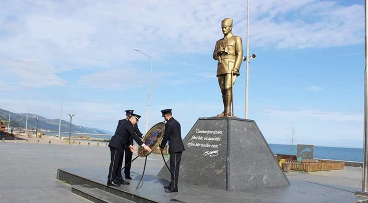 Program, İlçe Emniyet Amiri Murat Tan, Atatürk anıtına çelenk koyması ile başlarken, saygı duruşu ve İstiklal Marşı'nın okunması ile devam etti. Çelenk sunma programına İlçe Emniyet Amiri Murat Tan, siyasi parti başkanları, vatandaşlar ve polis memurları katıldı.