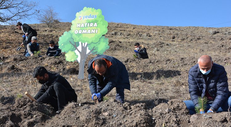 YEDAŞ çalışanları, Çorum'da oluşturdukları hatıra ormanında 10 bin fidanı toprakla buluşturdu.