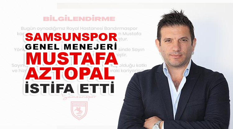 Yılport Samsunspor'dan yapılan açıklamada, "Bugün oynadığımız Royal Hastanesi Bandırmaspor karşılaşması sonrası sayın Genel Menajerinin Mustafa Aztopal yönetime istifasını sunmuştur. Yönetim kurulumuz almış olduğu karar neticesinde sayın Mustafa Aztopal'ın istifasını kabul etmiştir. Sayın Mustafa Aztopal'a Samsunspor'a vermiş olduğu katkı ve hizmetler için teşekkür eder, bundan sonraki kariyerinde başarılar dileriz" denildi.