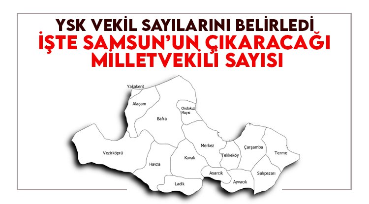 Samsun ise Türkiye Büyük Millet Meclisi (TBMM)'nde 9 milletvekili ile temsil edilecek.